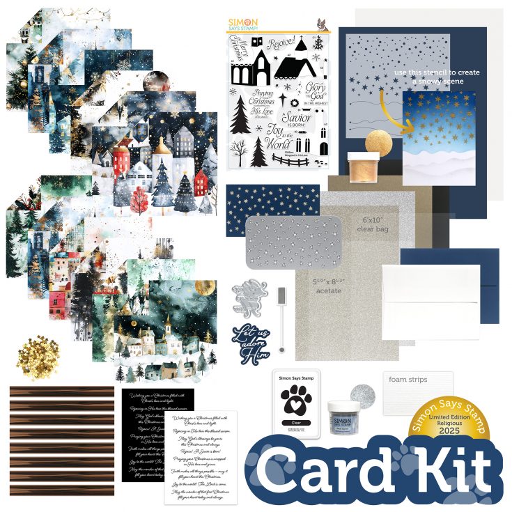 Inspired by the true meaning of Christmas, this heartfelt kit includes SEVEN brand-new exclusive products made to help you create cards that reflect faith, peace, and reverence. Build a snowy church scene and accent it with the beautiful patterned papers from La-La Land Crafts, craft a starry night or shaker card to echo that first holy night, or let the large statement sentiments take center stage for a message of hope and love. However you choose to create, we hope this kit helps you pause and cherish the season.
