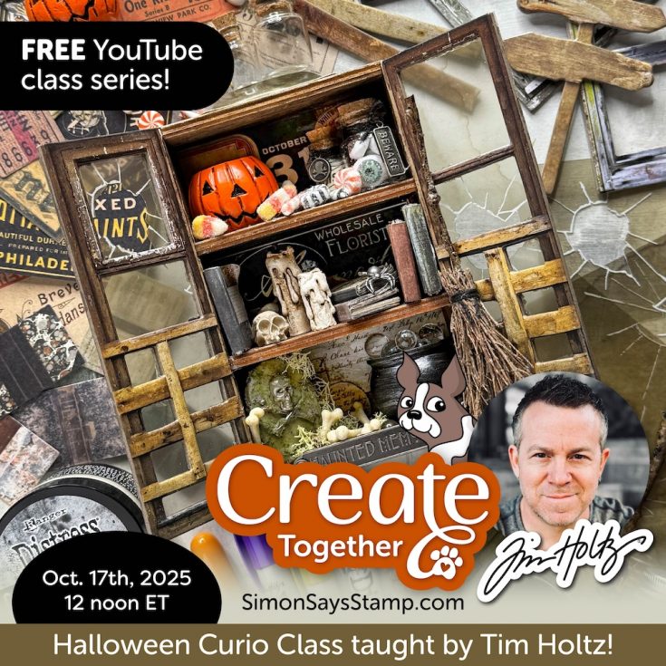 Today is the DAY! It’s time for the highly anticipated Halloween Curio with the one and only Tim Holtz and our star student and fearless founder, Heidi! Everyone is welcome to join in the fun and watch today, October 17th, 2025, at Noon ET on our Simon Says Stamp YouTube channel. We hope to see you there!