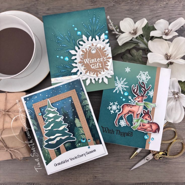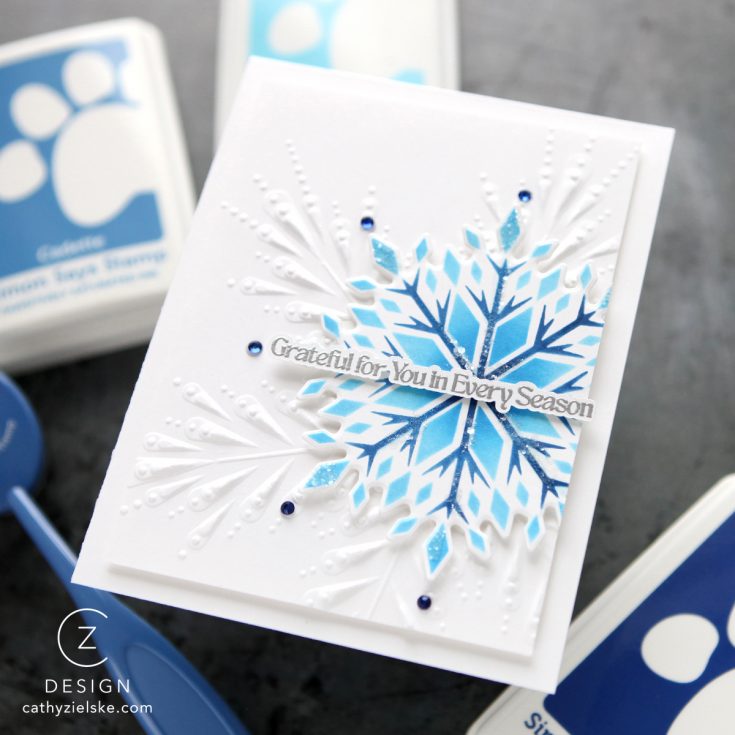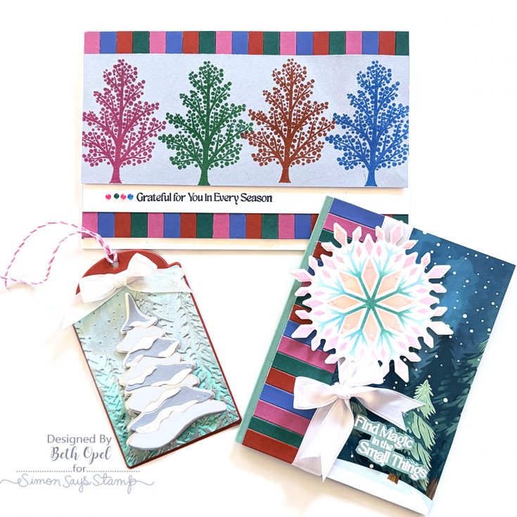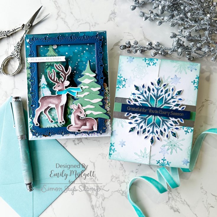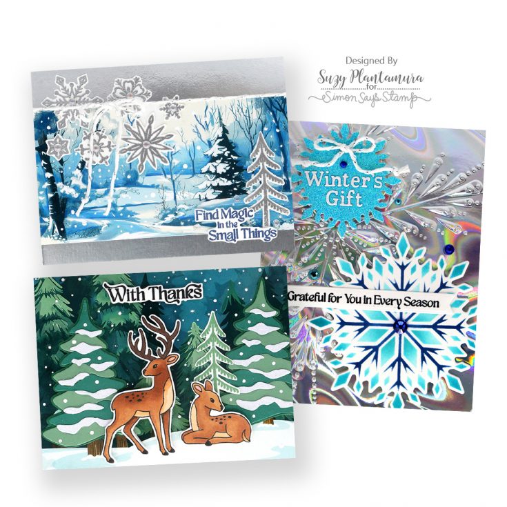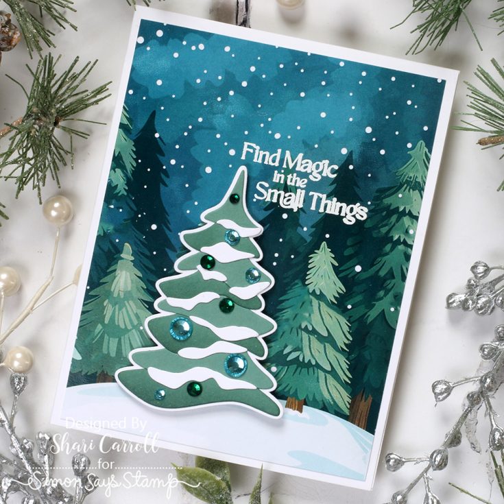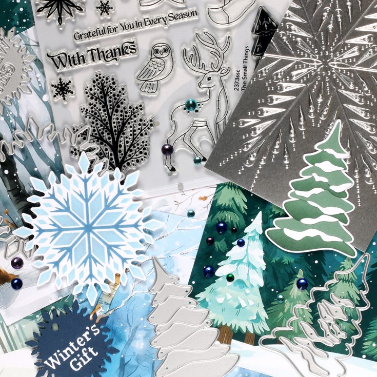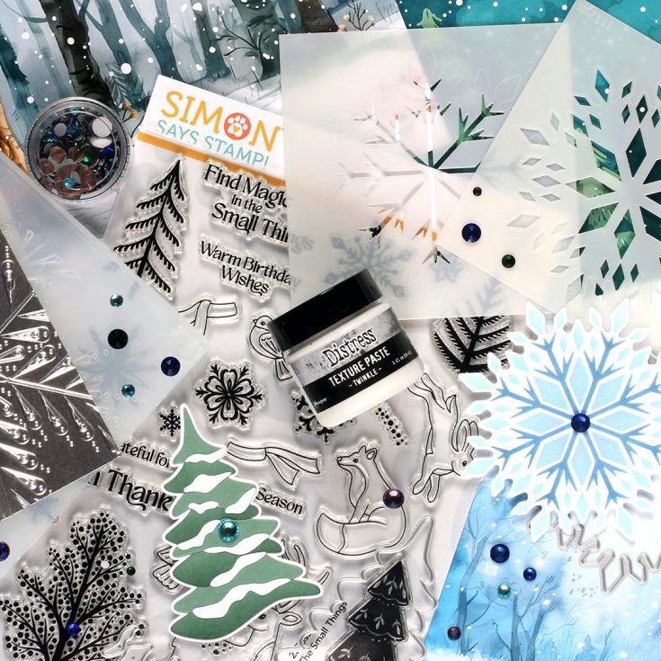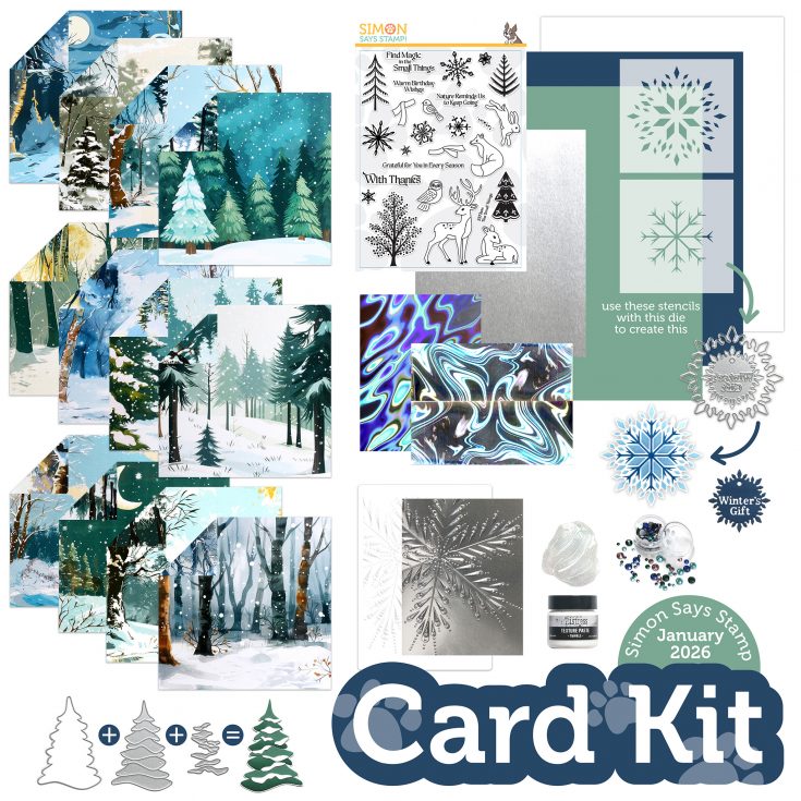 Start your new year with this fresh and wintry kit curated with you in mind! It includes five awesome NEW exclusive products from Simon Says Stamp: The Small Things 6×8 stamp set, 4×4 Crystal Snowflake stencil set and coordinating die, the beautiful Snowy Tree die, as well as the magnificent Pixie Snowflake embossing folder!