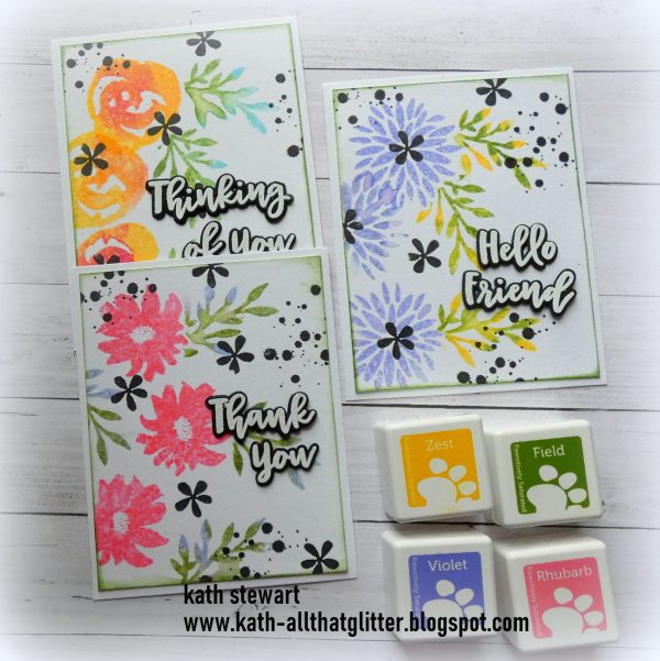 Kath was inspired by the signs in her garden that Spring is on the way to create a series of notecards using Simon Says Stamp Watercolor Bouquet and Brushstroke Greetings stamp sets, Watercolor Bouquet and Brushstroke Greetings co-ordinating dies and Pawsitively Saturated Inks.