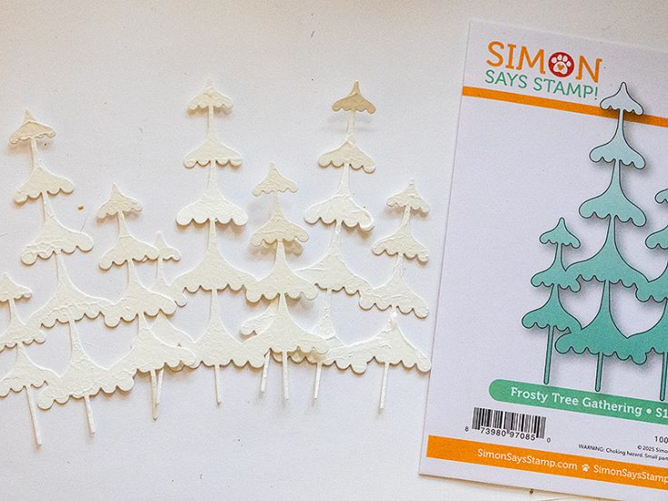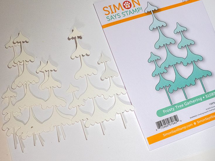 Start by die cutting the Simon Says Stamp Frosty Tree Gathering from watercolor paper three times.