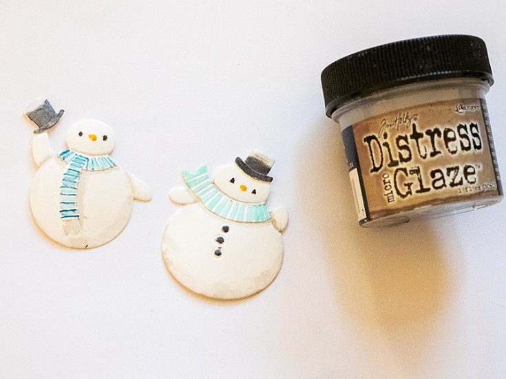 Apply Distress Micro Glaze to the snowmen to make sure that the ink does not run into the paste in the later steps.