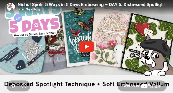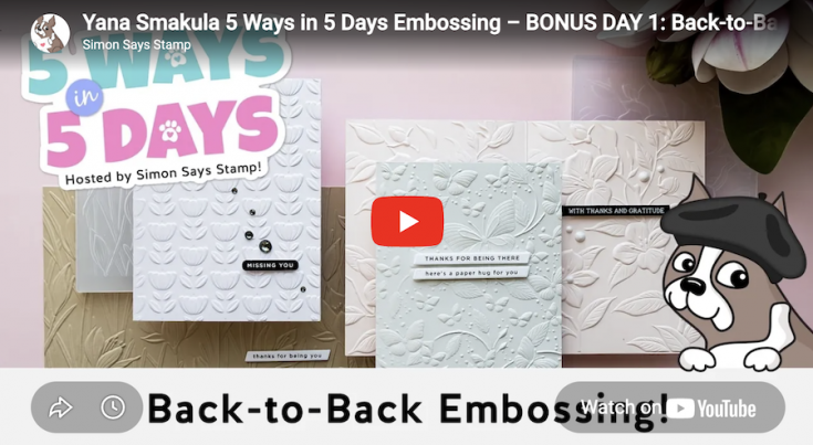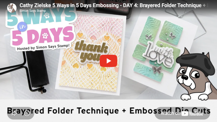 Throughout this series spanning March 30th – April 5th, you’ll be learning 5 unique ways each day to use our fan-favorite Simon Says Stamp 3D Embossing Folders. (Plus! Spoiler alert, you’ll actually have 7 DAYS of education with 2 bonus posts over the weekend! That’s a total of 35 crafty ideas that will be provided for you for FREE to keep your creative juices flowing!!) Today we’re going to focus on Brayered Folder Technique + Embossed Die Cuts!