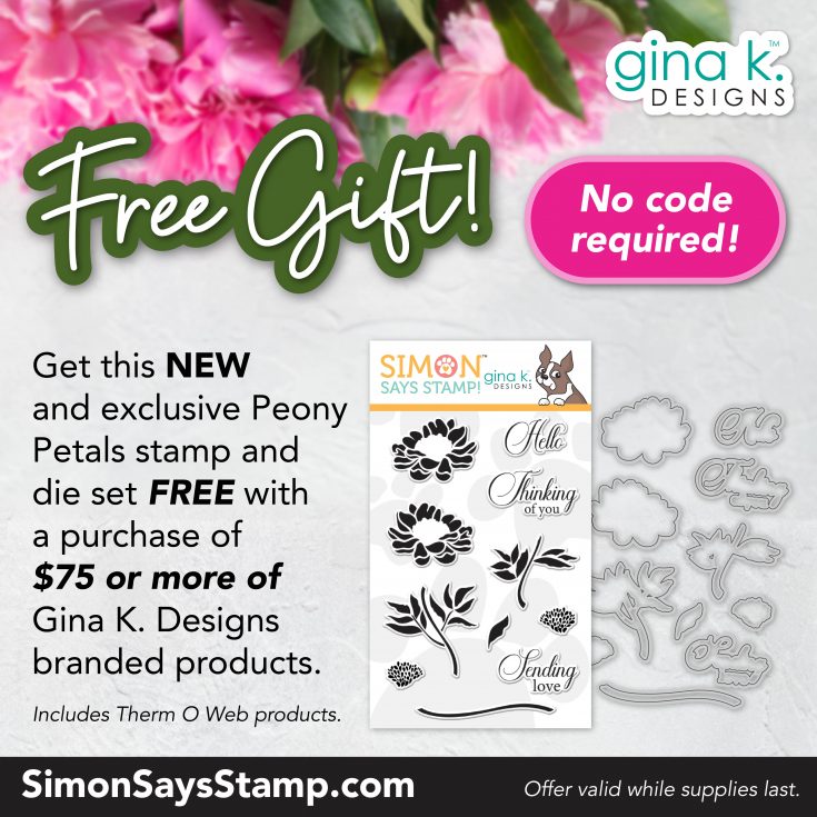 With any Gina K Designs purchase of $75 or more, this stunning stamp AND die set will be automatically added to your cart (no code required!). Even better—Therm O Web products qualify too!