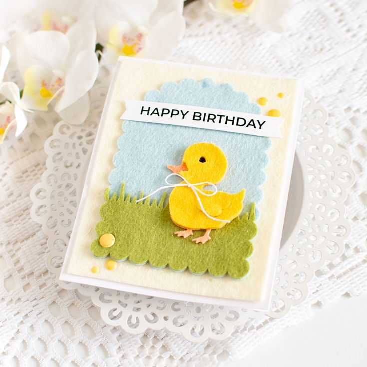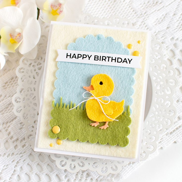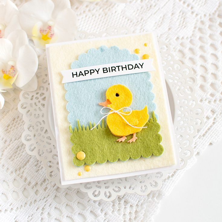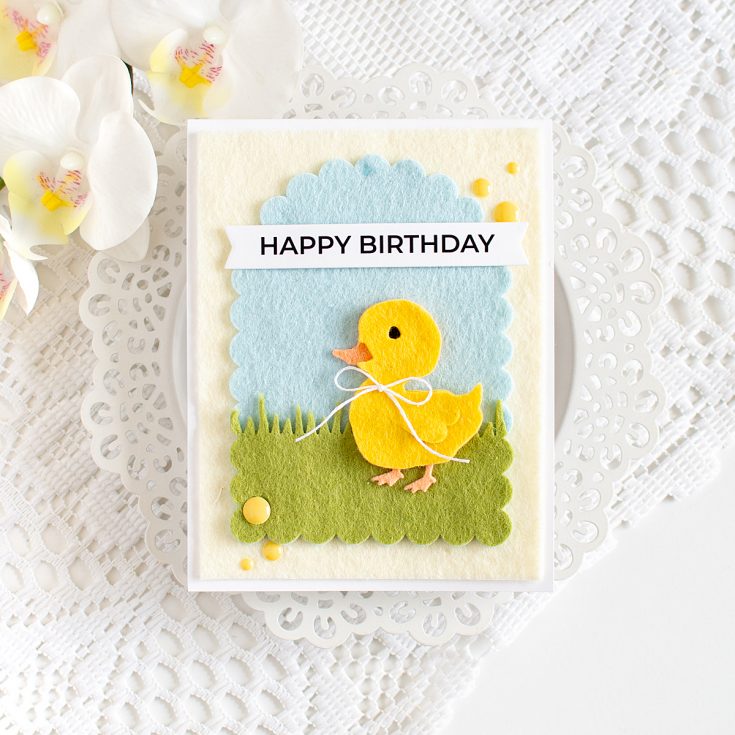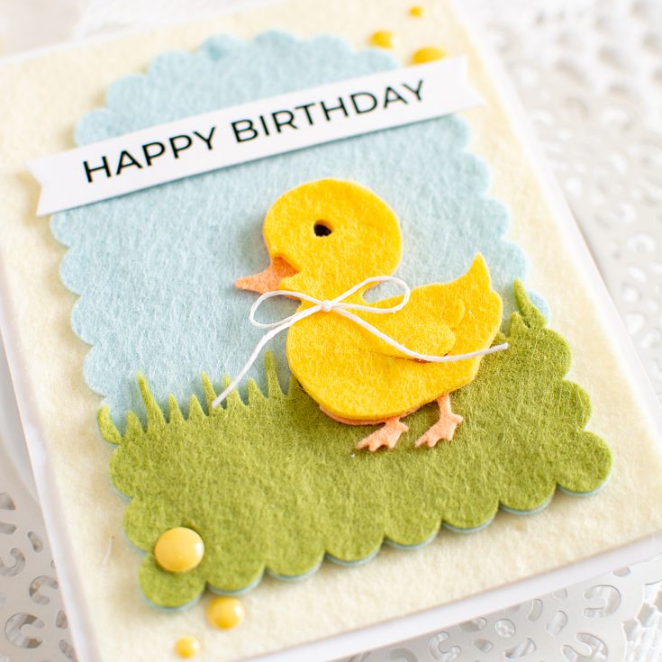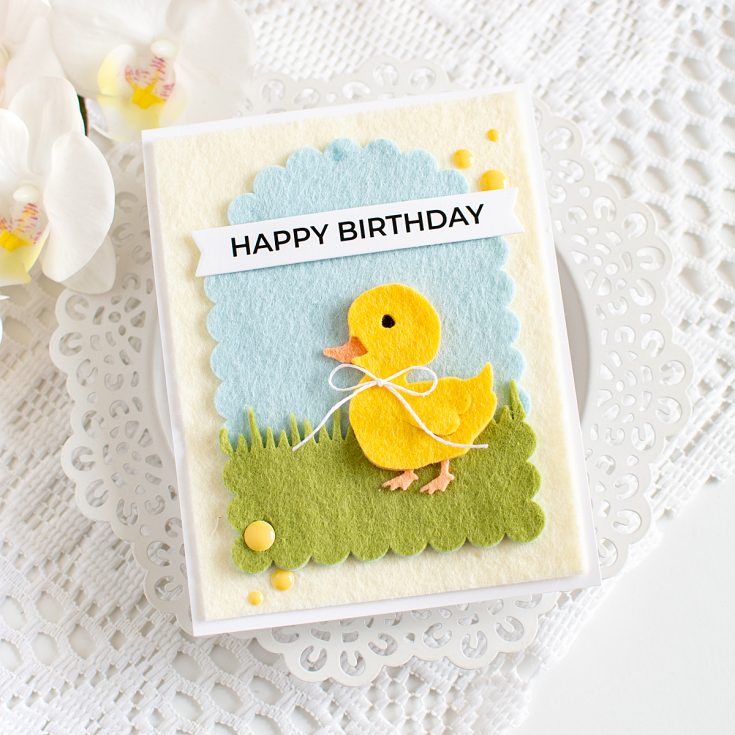 Hi friends! Heather Hoffman here today with a soft and fuzzy card! I’ve recently discovered how fun it is to die cut felt for cards, and it makes the cutest, most textured cards ever! I mean, how cute is this little ducky?!?