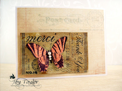 3. Re stamp the image again onto My Minds Eye Rosy pattern paper, trimming only the butterfly out.