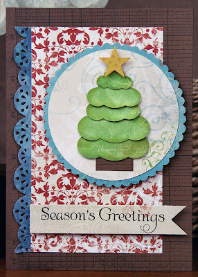 Try using some Fiskars border punches like, Postage Stamp, Scallop Sentiment, or Threading Water for nice borders. (they used Kaleidoscope and Double Bubble!)