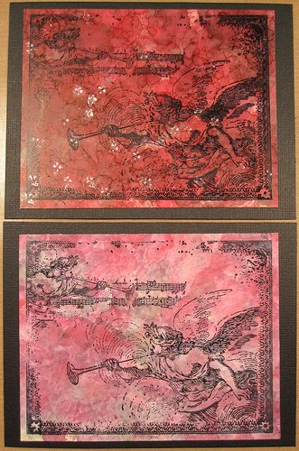 Christine used her technique in two different ways for these cards. The first card has a rich color mix of Meadow, Cranberry, and Silver Mixative on her blending tool. The second card is Meadow and Cranberry again, but with the Snow Cap White Mixative to mute the colors and make it a little softer. I love both, and how they each carry their own tone!