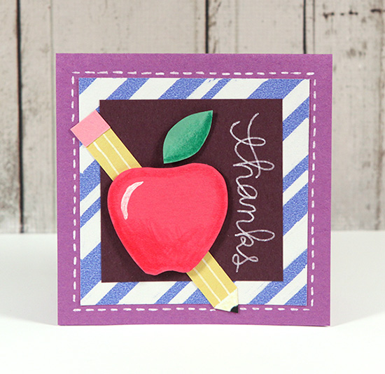 Since today is the last day of Back to School month here at Simon, I thought it would be fun to challenge myself to use items from the Junior Stamper Kit. The kit is packed full of construction paper, markers, crayons, glue, scissors, and more. Often we look over these child-like supplies and go straight to the usual cardmaking items (stamps, patterned paper, etc), but there’s something about  playing with construction paper that is just so fun!