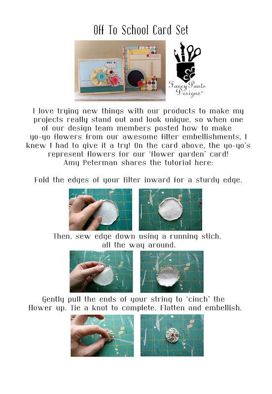 Here’s a line from Fancy Pants Designs dedicated JUST for Back to School! (Notice the first one is a Filter Embellishment you can use to make the yo-yo flower in the Off to School Cards project!)