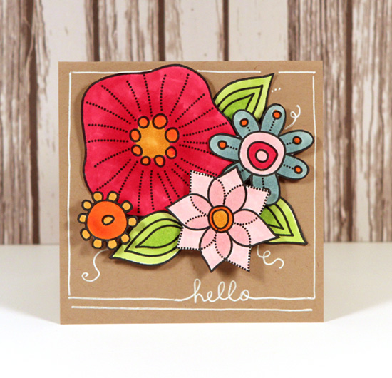 For today’s card, I wanted to create a bright and colorful card using the Ella’s Flowers stamp set from My Cute Stamps. These flowers just look friendly, don’t they? :)