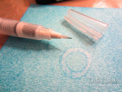 3. Get your Detail Water Brush flowing on a piece of scratch paper (no need to squeeze – just draw like you would with a brush marker) and then slowly draw circles onto your inked cardstock. The water takes a few seconds to react with the ink, so be patient!