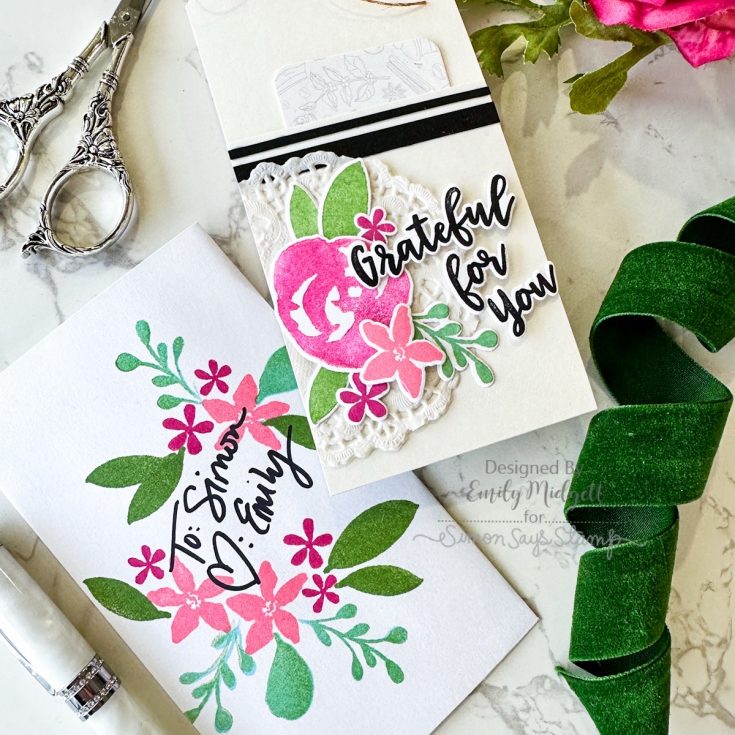 Rounding out this inspiring kit are 1 sheet of Simon Says Stamp adhesive squares, 1 half sheet each of Simon Says Stamp Clear acetate, 2 A2 side-fold cards in Fog and White, and 1 White Mini Slimline envelope, and one each of A2 envelopes in Dandelion, Metallic Doll Pink, and Metallic Green Leaf. We can’t wait to see how you are inspired by this kit!