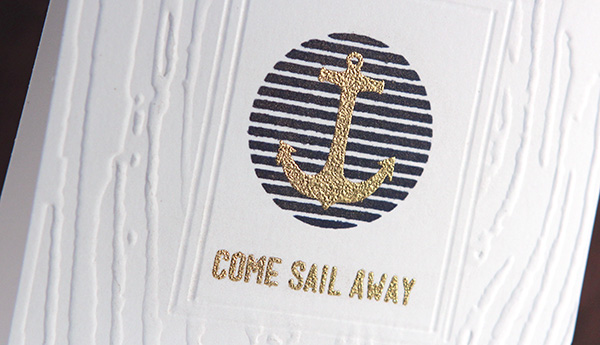 I love the detail of both the dry embossing with this folder and the heat embossing with Ranger Super Fine Detail Gold embossing powder and the Come Sail Away stamp set by Kelly Purkey.