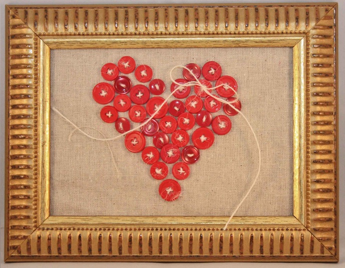 Jen’s initial idea was to frame her creation, which is adorable, but I also love the sweet adaptation of making it a pillow!! You can easily and quickly make either by following a few simple steps. First, pick a piece of your favorite fabric or one that you have in and 8.5″ x 11″ size (or the ability to cut it down to this size). This cutting mat & scissors are great for getting your fabric ready! Next, pick out some red buttons, like these Ladybug Assorted buttons from Doodlebug. Arrange them in a heart shape, and adhere them to the fabric, allow some drying time, and secure the buttons in place by sewing them with May Arts burlap Natural twine. Allow for some extra twine and plan your stitching ahead by ending in the corner and then tie a cute little bow for a great finishing touch!