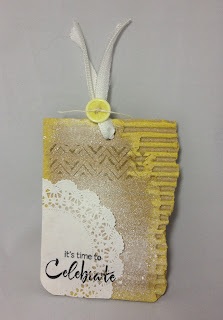 For these two matching recycled projects, Linda almost used as much recycled as she did new! She used a cardboard box for the embellishment and gift tag, a button from an old shirt, left over string, a doily from underneath a cake, the smaller doily is from a cafe, a paper bag that used to hold Easter Eggs, and the zipper is from packaging that new bed sheets came in! Whoa! Such simple items to create these two beauties!
