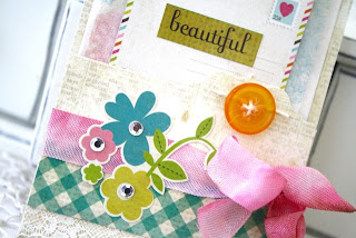 “Write on” with Uncommon Petite Type Stickers by Authentique! And tie it up with Crinkle or Lavish Ribbon and Lace! I love the dyed ribbon too! For this effect, try Summer and Spring Seasonal Reinkers by Tim Holtz!