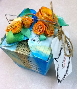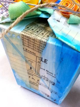 If you’re ever feeling overwhelmed with the monotonous routine of wrapping presents, these fun gift boxes could be great for gift cards, jewelry, trinkets, ornament exchanges, cookies and cupcakes, etc! AND it’s so fun to create this masterpiece- it will be an extra gift to someone on top of what’s inside! Jennifer started with a container box, and sanded it down a little (usually there’s a waxy finish and that can hinder the glue or mediums staying permanently).