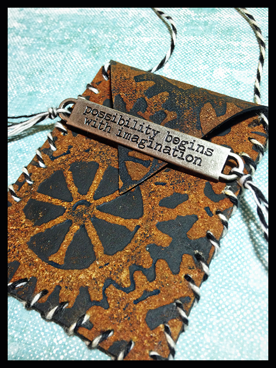 Happy New Year, you guys! It’s the season of fresh starts, and I’m thrilled to have been invited to create another tutorial for my friends at Simon Says Stamp. I think a cute little pouch to hold wishes feels like a nice project to kick off 2013. You can wear it as jewelry or hang it somewhere special (or, like me, from your rear view mirror…). You’ll recognize a classic Tim Holtz grunge technique in this tutorial, along with a new way to use that darling Sizzix Alterations Artful Dwellings die. Ready? Let’s do this!