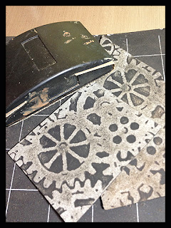 Next, emboss the two shapes with the Sizzix Alterations Steampunk die.