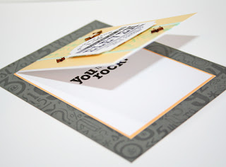 - I adhered the white card on the dark yellow paper and then added a slightly smaller piece of lighter yellow paper to the front of the card.