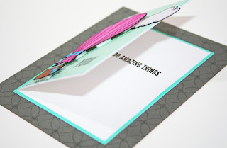 - I adhered the white card on the pool paper and then added a slightly smaller piece of pool paper to the front of the card.