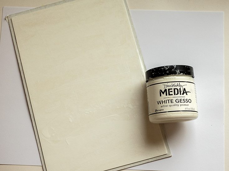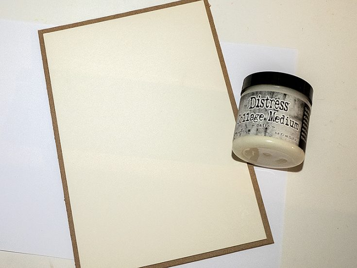 As a base I used Sizzix Little Sizzles Mat Board and Simon Says Stamp chipboard. Cut a piece of mat board to 6 x 9 in. Cut a piece of chipboard which is slightly larger. Glue together with Distress Matte Medium and place under a heavy book.