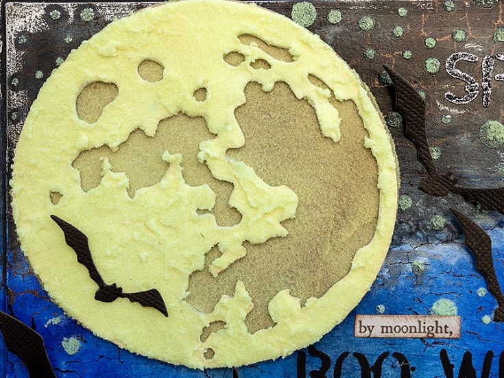 Here you can see the glow effect on the moon, with the two different shades of Distess Ink.