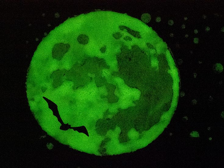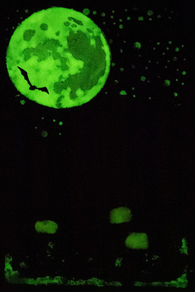 I placed one bat on the moon, which shows as a shadow when the moon glows.