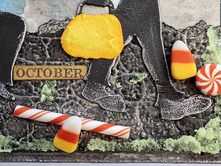 The kids dropped some sweets on the ground, from Tim Holtz Halloween Confections.