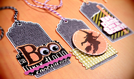 By covering the Christmas parts, you can use the tag shape for whatever you like! In this case, I made them into Halloween tags.