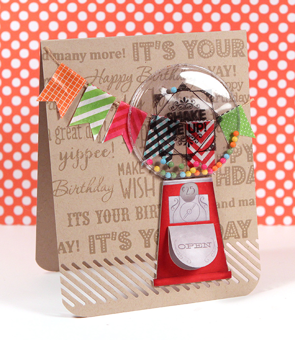 Today I have a fun birthday card featuring the Gumball Dome from Smash. It’s so fun! I also used the Section Tape from Smash to create a tape banner behind the dome. Super easy to do.