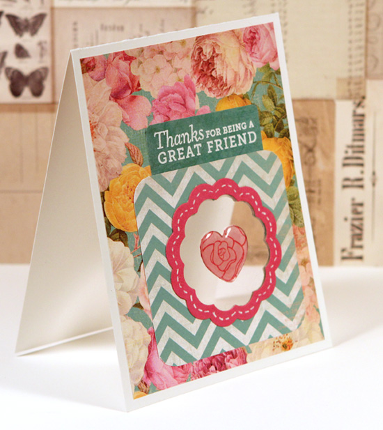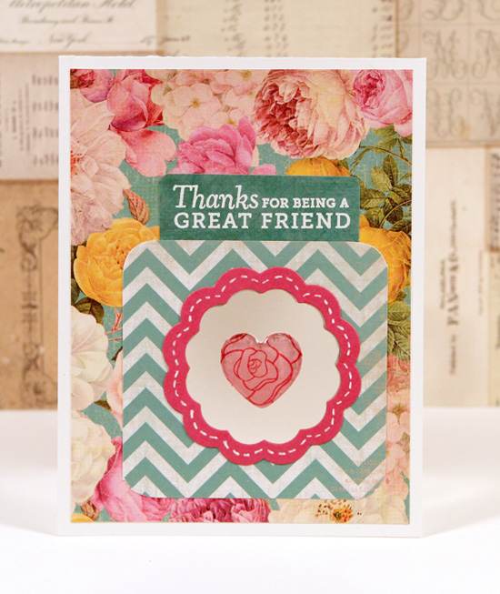 For today’s card, I wanted to use the new Sugar Chic 6×6 paper from Heidi Swapp. I also wanted to try out the Epiphany Crafts Shape Studio to make an epoxy “bubble” heart. Somewhere along the brainstorming process I made it into a window card using some Spellbinders Nestabilities dies.