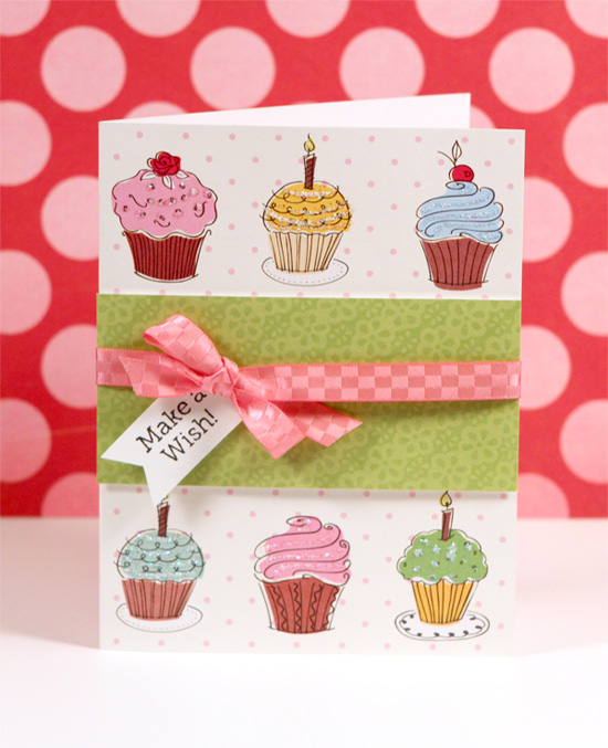 For the video, I used the Cupcake Cards With Messages Kit. Here’s how a card would look when you only use the kit and a black ink pad…