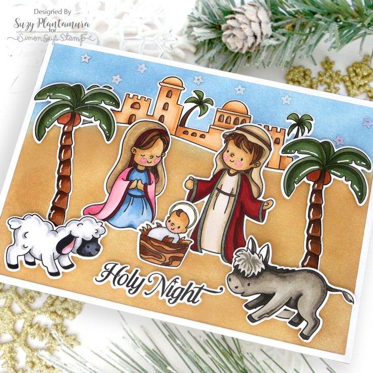 Hi friend! Please join me in welcoming back special monthly guest Suzy Plantamura with another fun rendition of “One Stamp, Five Ways” featuring our newly released Holy Night set! Read on and learn more! Enjoy!