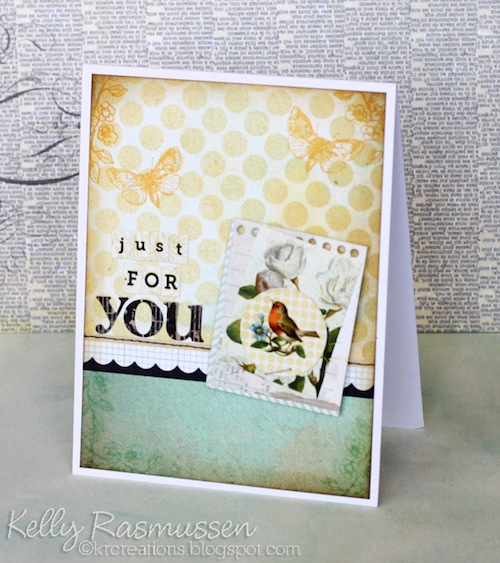 Serenade is one of those collections that I can’t get enough of. The papers are slightly distressed which lends to the classic, romantic feel of the collection. On this card, Kelly used Serenade Layered Stickers & alphabet stickers to top the cardstock that she enhanced with butterfly and flower stamps from the Pocket Watch set.