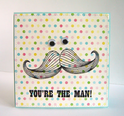 Need an cute idea for a man card? Try Alice Wertz’s idea using the Mustaches stamp by My Cute Stamps!All you need is polka dot paper and googly eyes!