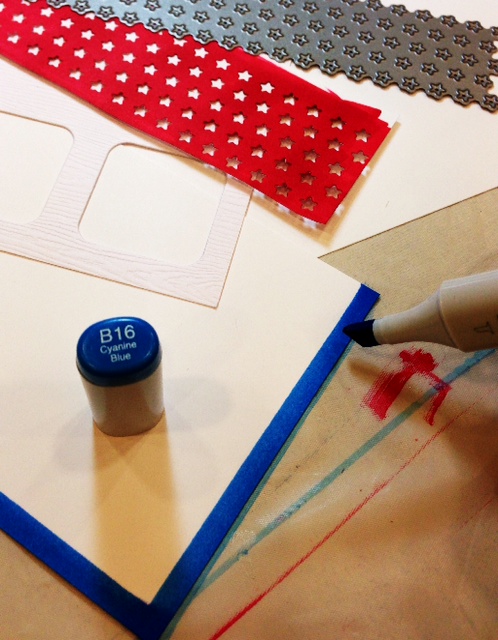 Then Kathy added color to the white 120# cardstock using her B16 and her R29 Copic Markers.