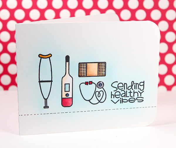 Today I have a card for you made using the new First Aid Kit stamp set from Paper Smooches. I just love the little images that Paper Smooches includes in the stamp set! These were fun to color, too!