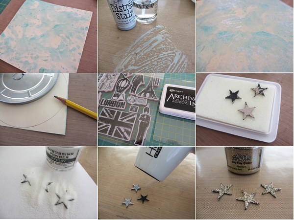 - I gathered an Emboss it pad, Sticky Embossing powder, and my favorite color glitter, Platinum.