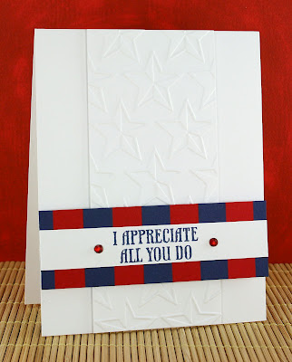 Another one of my favorite things is getting to see what you and our Design Team creates each week for the Simon Says Stamp Challenge! It’s so fun to see imaginations and creativity at work. Here is what three of our designers created this week for the Sporty and/or Patriotic Challenge Theme!