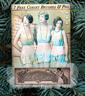 I love the crinoline on this!  It goes so well with the pearls and (of course) the image – so feminine!!  The torn, inked paper in the background is nice too!   Candy used Vintage Photo and Black Soot Distress Inks by Tim Holtz, Cutter Bee Scissors by EK Success, Melissa Frances White Pearls, and Waterfall and Star Dust Stickles by Ranger!