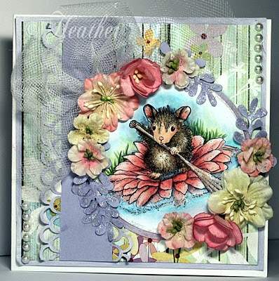Sparkle & Bling by Heather! Heather used an adorable House Mouse Stamp called Flower Raft! Need something to color it in? Copics and Letraset Promarkers are both wonderful options!