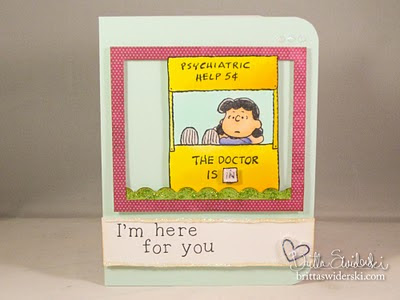 Sparkle & Bling by Britta! Britta used a sentiment that says “I’m here for you.” What a simple, sweet statement! Want a stamp that says that? Check out Unity‘s stamp set called You’re A Doll.