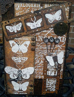 Made by Tracy Evans! Tracy used the Papillon Stamp set by Tim Holtz, as well as lots of Idea-ology pieces!
