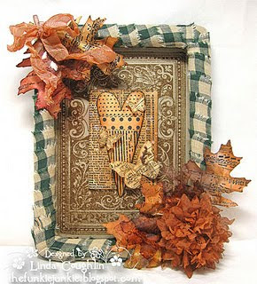 Made by Linda Coughlin! Linda recycled a picture frame! Those beautiful leaves were also partially recycled and she colored them with Alcohol Inks!