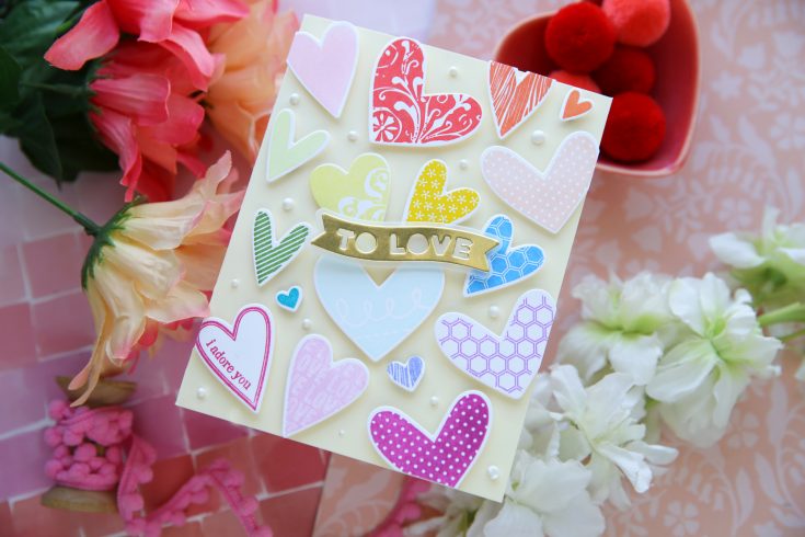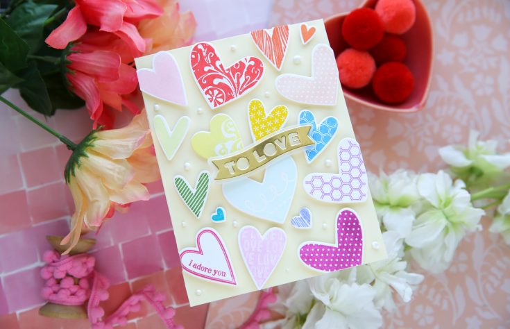 Hi friend! Happy Wednesday! Please join me in welcoming back special guest Laura Bassen to showcase this super fun card showcasing our brand new Lots of Hearts stamps and dies as well as an oldie but goodie from CZ Design: Little Banners, and the most beautiful assortment of our exclusive Pawsitively Saturated inks! She set the base with our creamy dreamy Rainbow Splash Buttercream cardstock and added a fun pop of dimension with Tonic Simply White Crystal Drops! Be sure to watch the video for all the details, and enjoy!