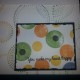Such a fabulous Halloween set, but Halloween is here and gone in a flash so what else can this set be used for? I was struck by the masked cat; with his cloak he is all set for trick or treating but peeking through a window (or perhaps out of a hole) then he becomes a bandit or burglar! I stamped him in Memento on some Neenah solar white card and coloured with Copics before trimming him out. I separated his tail so that I could raise that up a bit and get it to peek out the window die cut. The paws are actually from last years Halloween set where this cute kitty was peeking out of a pumpkin; again stamped, coloured and trimmed out. Once the window frame was in place in a panel of patterned paper it came down to what was this kitty going to be stealing? Cookies perhaps or how about a little bag? Hmmm, the pomegranate die from Sweet Fruits looks just like a little bag!