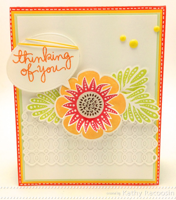 And we can’t end this post without mentioning the amazing detail Kathy adds to her stamped images by simply adding white dots for added dimension and texture. They make the flower images come to life and stand out so beautifully on her cards! Such a great technique that adds so much to her finished designs.