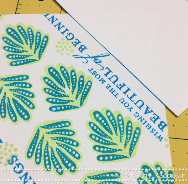 For today’s lesson, Kathy is going to show us a great way to cover up those accidental mistakes we sometimes make when working with stamps and ink. We’ve all been there… we almost have a card completed and then we’re horrified to discover that we accidentally got an ink smudge on the card base and we panic, thinking all we’ve created is pretty trash. Well don’t throw them out just yet, because Kathy has a great trick that can save those cards and make them look just as good as they would have without the little smudge! ;-)